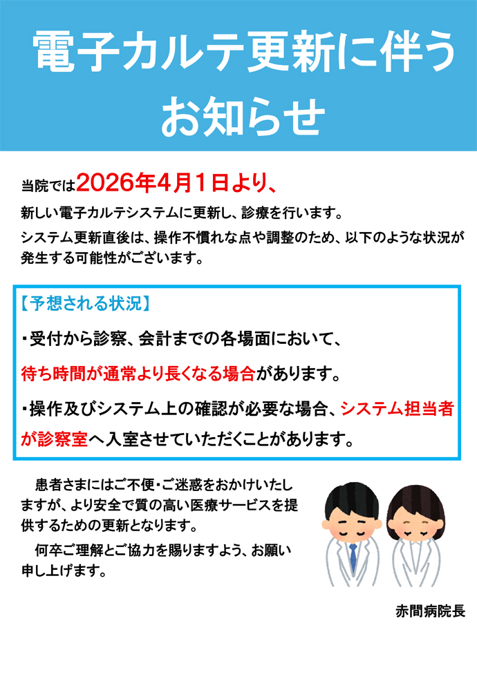 Information「電子カルテ更新に伴うお知らせ」掲載