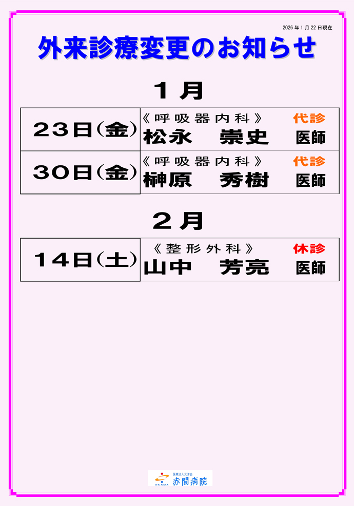 Information「外来診療変更のお知らせ(1月22日版)」掲載