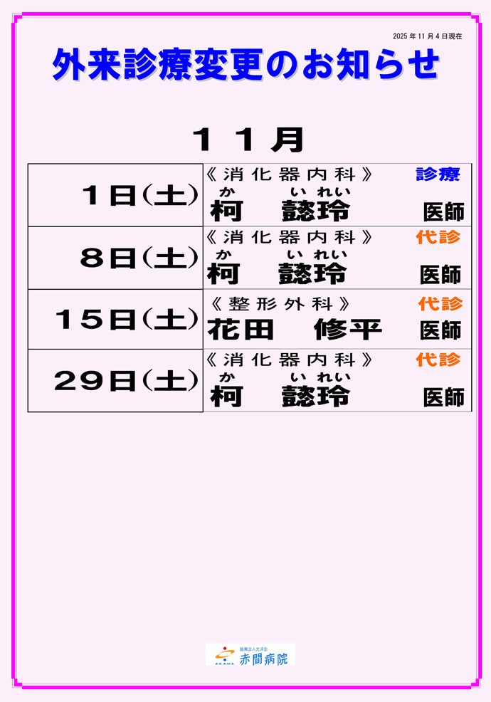 Information「外来診療変更のお知らせ(11月4日版)」掲載