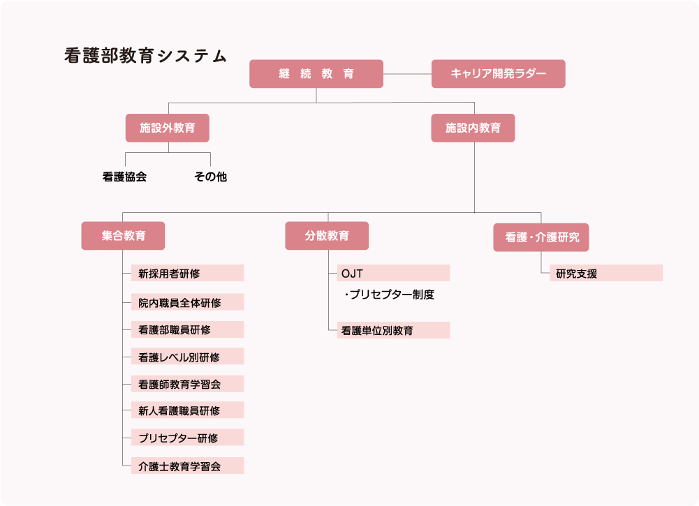 教育理念 病院の理念や看護部の理念・方針に基づいて、信頼される質の高い看護・介護サービスを実践できる人材の育成を目指す